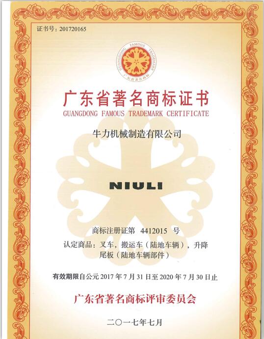 • 廣東省著名商標證書